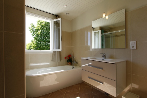 The main bathroom with bath, large shower and WC is next to the corner bedroom and could be shut off to form an en-suite if desired.